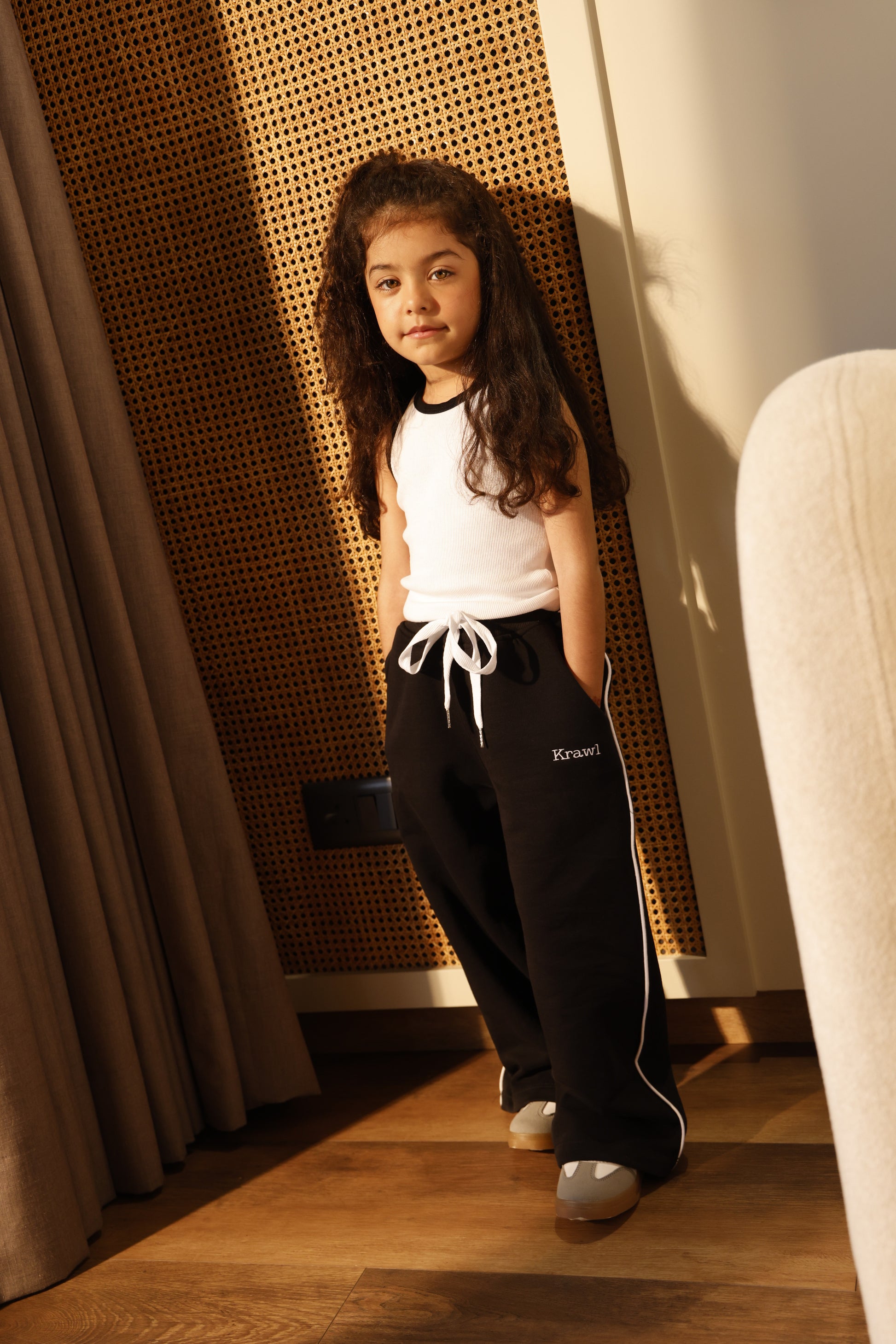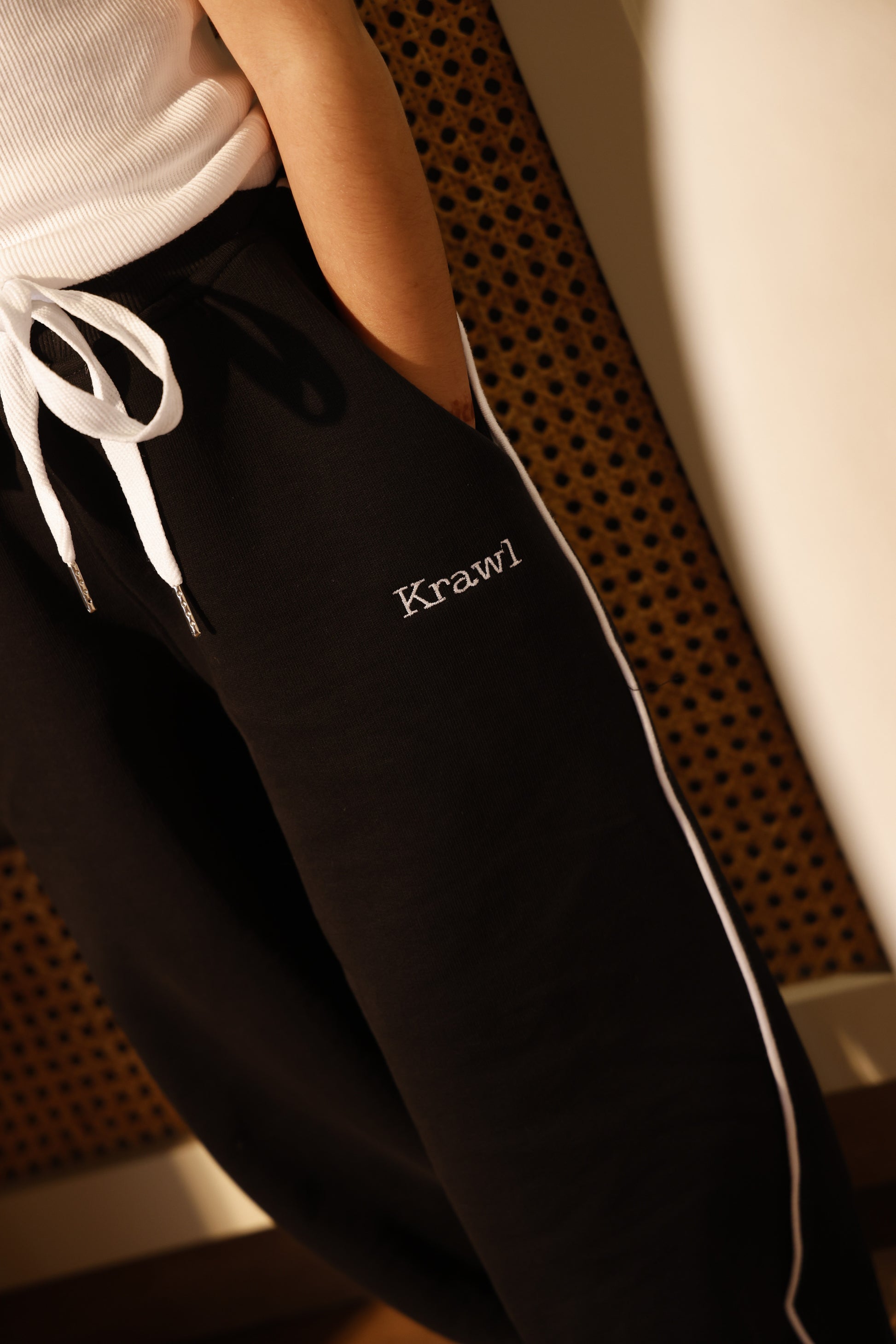 Loose-fitting joggers. Lightweight and warm, made from cotton terry with an embroidery on the thigh. The elastic waistband has a drawstring for a custom fit.